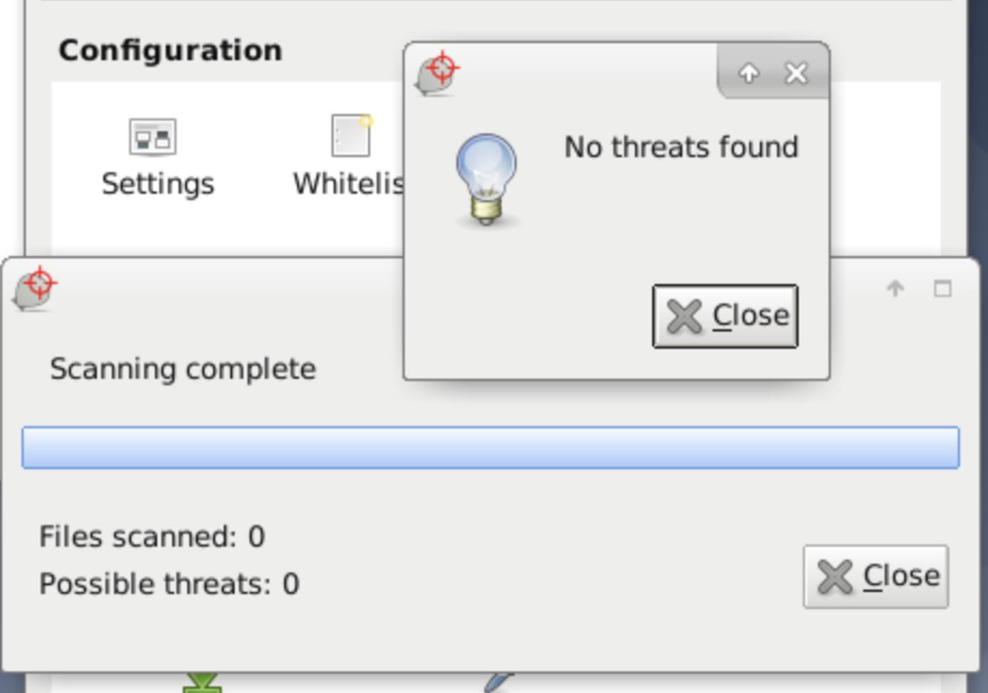 ClamTK scans the directory and displays a summary of the scan when it’s finished.