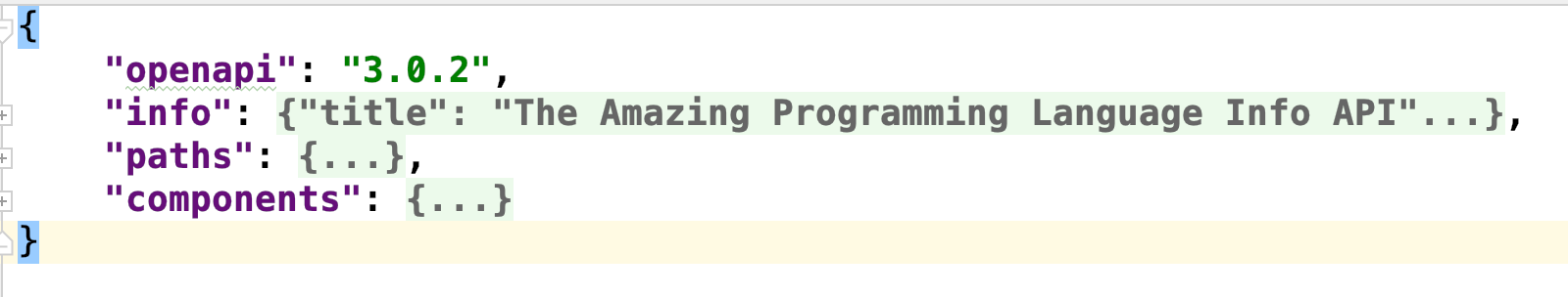 Modifying the inner details of the documentation requires some more understanding of the docs object. The JSON object that comes back from openapi.json has four attributes.