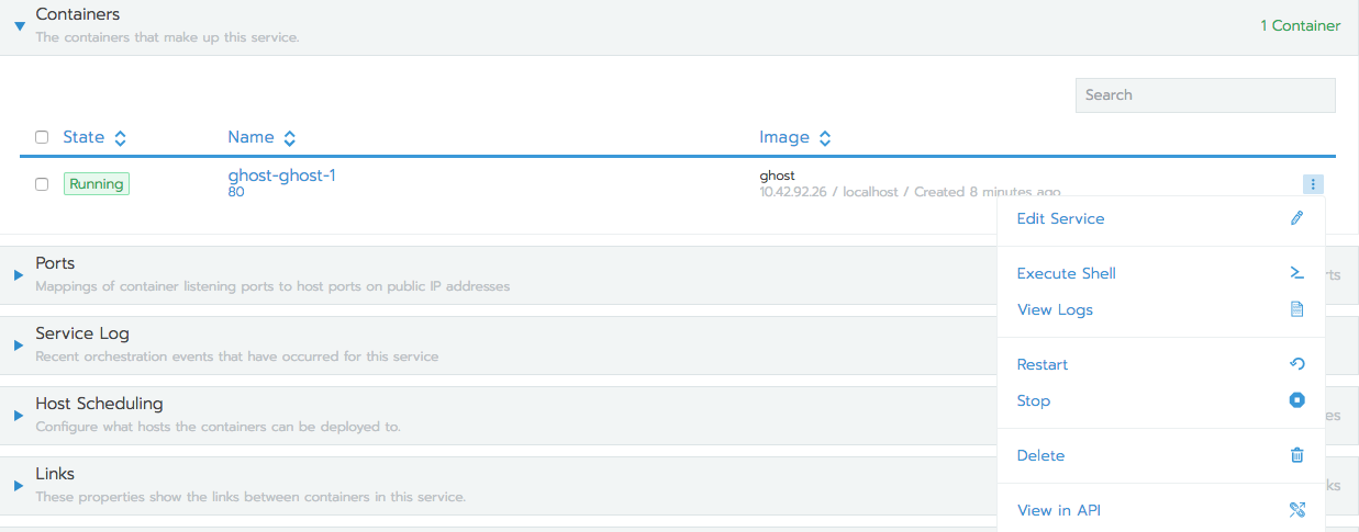 You have just used Rancher to deploy a containerized Ghost service.