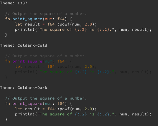 bat comes with a host of themes for syntax highlighting. You can get a list of them, along with samples, using the command below: