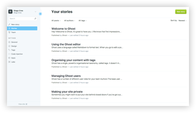 Ghost is an open source blogging platform that helps you easily create a professional-looking online blog.