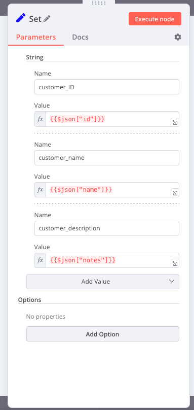 customer_IDvariable on the left side of the screen into the Customer ID box in the “Customer Messenger” node. n8n expands the variable to the formulafx {{ $json.customer_ID }}.