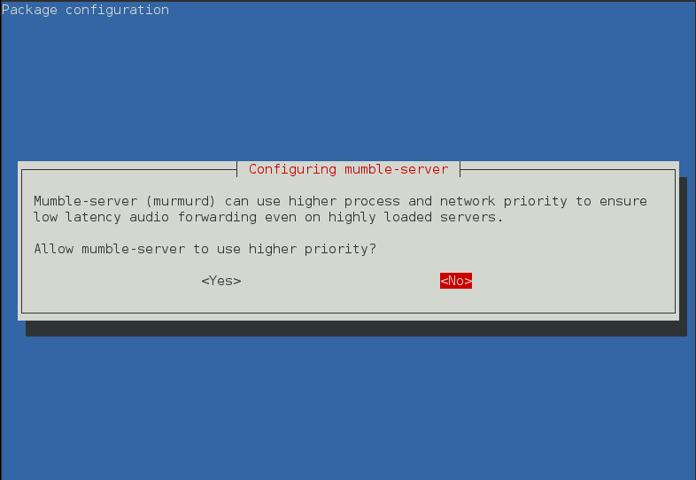 If you want Murmur to have priority over other applications on the server, you can answer Yes to this question.