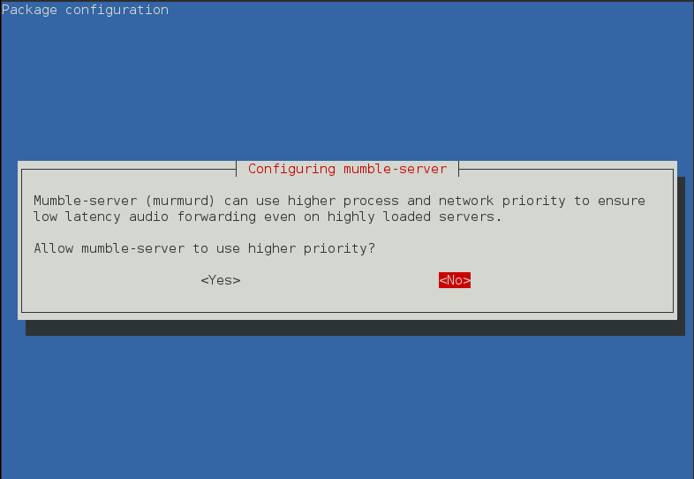 sudo service mumble-server disableMumble will then ask if you want to reduce latency by setting a higher CPU and network priority.