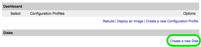 Return to the Linode Dashboard and under Dashboard select Create a new Configuration Profile.