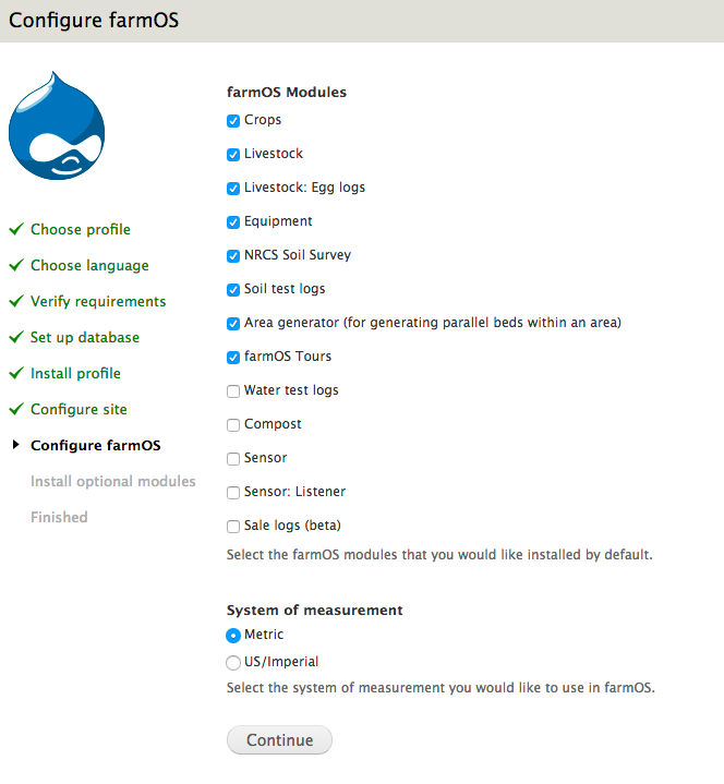 The next section asks you what modules you want to install. You can install and uninstall modules at any time, but this is a chance to install personalized modules that work for your specific type of farm.
