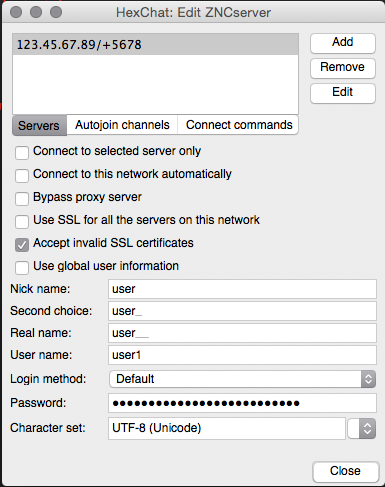 You can use any preferred GUI or CLI client to connect to ZNC. For the example below, we’ll be using HexChat.