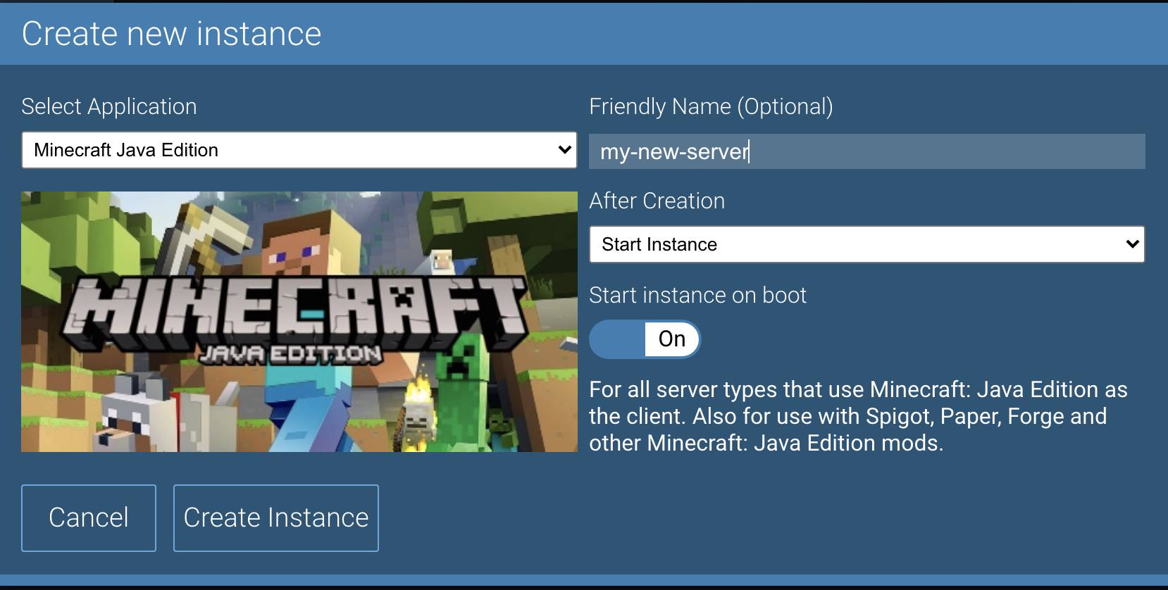 In the pop-up menu that appears, select the game you’d like to deploy using the dropdown menu, and select all configuration options as desired. Once all the presets are set, select the