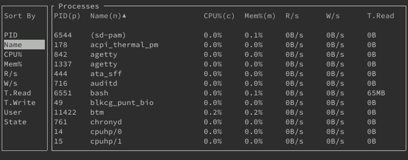 The Processes widget has numerous additional keybindings to help you navigate the extensive list. The list below highlights the most commonly useful keybindings.