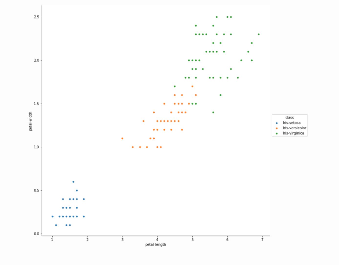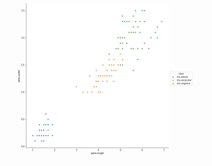 1 2 3 4 5 6 7 8 9 10 11 12 13 14 15 16 17 18 19 20\begin{equation*} \mathbf{V}_1 \times \mathbf{V}_2 = \begin{vmatrix} \mathbf{i} & \mathbf{j} & \mathbf{k} \\ \frac{\partial X}{\partial u} & \frac{\partial Y}{\partial u} & 0 \\ \frac{\partial X}{\partial v} & \frac{\partial Y}{\partial v} & 0 \end{vmatrix} \end{equation*} import pandas as pd import seaborn as sns %matplotlib inline url = "https://archive.ics.uci.edu/ml/machine-learning-databases/iris/iris.data" names = ['sepal-length', 'sepal-width', 'petal-length', 'petal-width', 'class'] iris = pd.read_csv(url, names=names) iris.head() iris.describe() sns.pairplot(x_vars=["petal-length"], y_vars=["petal-width"], data=iris, hue="class", size=10)