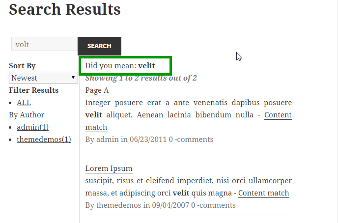 Test autocorrection suggestions by entering a word with some spelling mistakes or a word that does not occur in any of your blog posts. It should show Did you mean suggestions:
