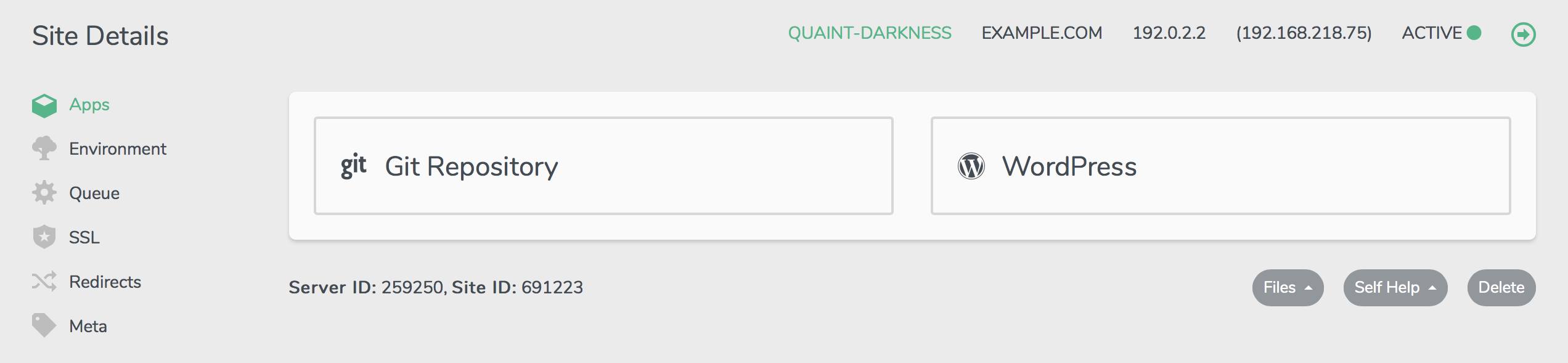 From the Active Sites panel, click on your site. The Apps section will appear: