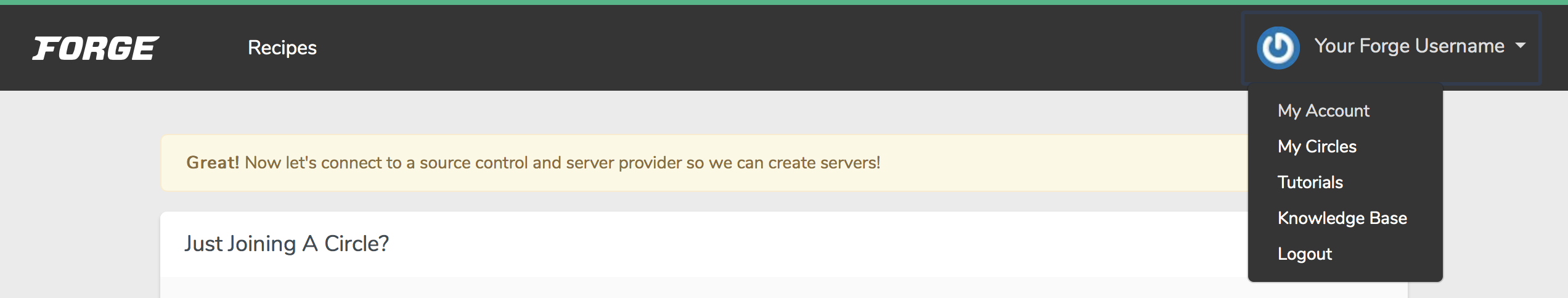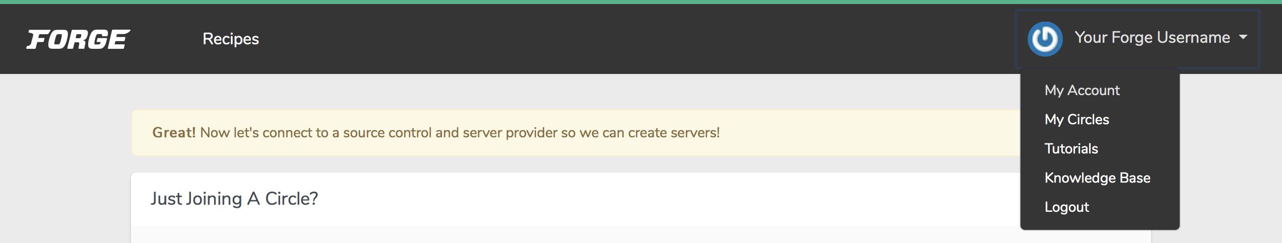 From the top navigation menu of the Laravel Forge website, click on your username and then choose the My Account option: